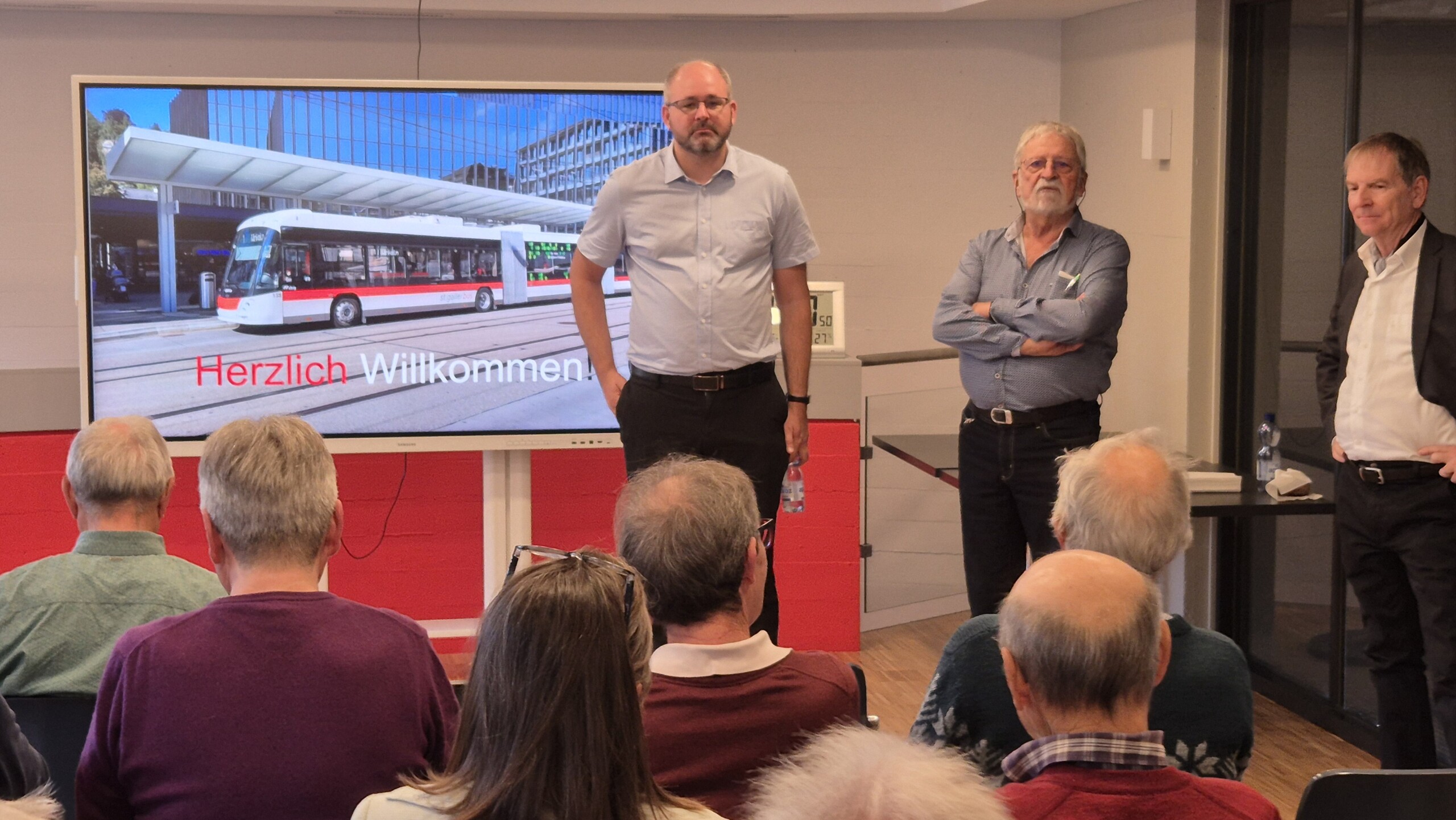 Die städtischen Verkehrsbetriebe tragen wesentlich zu einem attraktiven ÖV ist der Ostschweiz bei. In einem äusserst spannenden Referat hat uns Stadtrat Peter Jans aufgezeigt, mit welchen Massnahmen das städtische Angebot bis 2030 vollständig elektrifiziert wird. Dies abgestützt auf das Klima- bzw. Energiekonzept der Stadt. Im zweiten Teil hat uns Urs